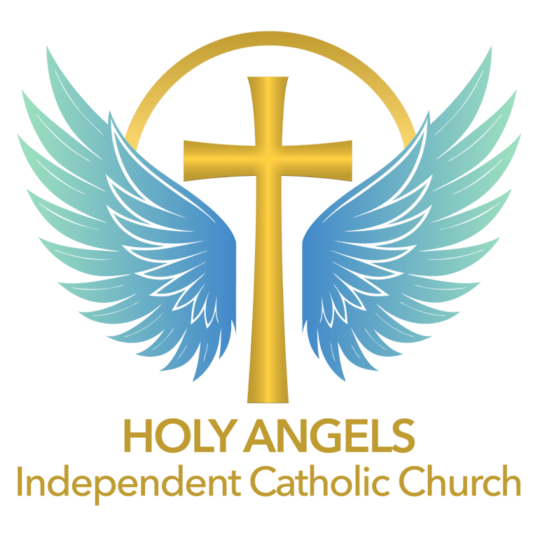 All of God's people are all called to be "Holy Angels". The word "angel," in the Biblical sense, means "messenger". Angels are messengers from God sent to proclaim the Word of God, that is, Jesus as the Word. For that reason, in the very center of our logo is Christ, represented by the cross of His sacrifice. By naming our parish Holy Angels we constantly remind ourselves of our own call and responsibility to share Christ with the world in accordance with the Great Commission (Mt 28:16-20). But that challenge is enabled by the working of the Father, Son and Holy Spirit, the Holy Trinity, represented by the three thin circles that frame the logo. Finally the the circle, itself, also represents the communion that binds us all together in the one family of Christ, the Church.