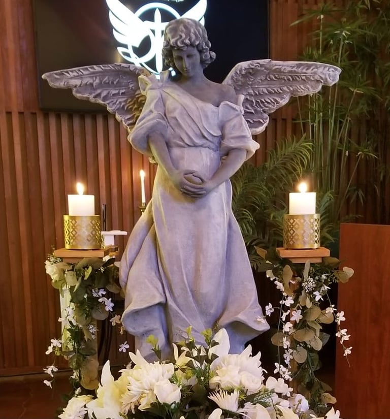 Do you know where our lovely angel came from? The poor thing was languishing in the dirt near the Davis Hall building when we resurrected her, spruced her up and brought her indoors. We mentioned in the last newsletter that Mother Tammy would be the guest presenter at the Interfaith Council of Central Orange County meeting on the 14th. It was so interesting to watch those from other faiths as they listened to (and thoroughly enjoyed) her talk on the Ecumenical Catholic Communion approach to Catholicism. Moreover, they were so delighted and complementary on our space: rightly so! "Where did you get that angel?" was uttered more than once as they drew near to her as they walked through the chapel.